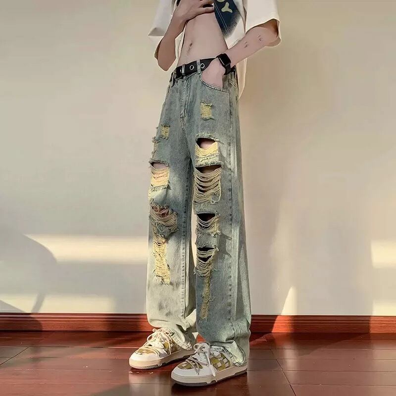 straight damage washed denim pants -nb289